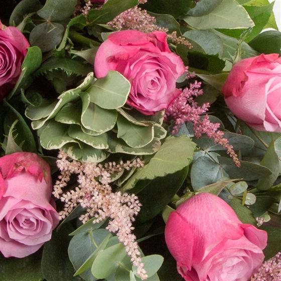 A simple tied spray of 6 roses in your choice of pink, red, white or yellow. Choose either 6 roses as pictured or 12.